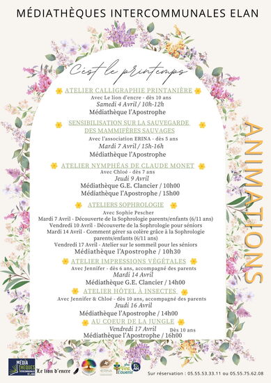 Les médiathèques intercommunales proposent de nombreux ateliers pour les vacances : calligraphie, impression végétale, sophrologie...