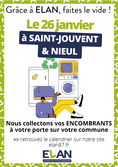 En janvier, ELAN collecte les encombrants le lundi 26 sur les communes de NIEUL et SAINT-JOUVENT !