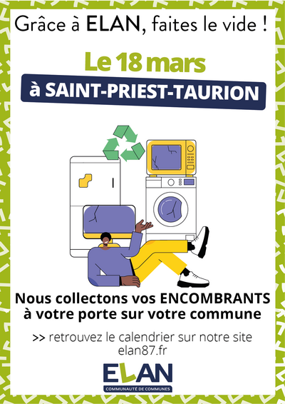 En mars, ELAN collecte les encombrants le mercredi 18 sur la commune de SAINT-PRIEST-TAURION !
