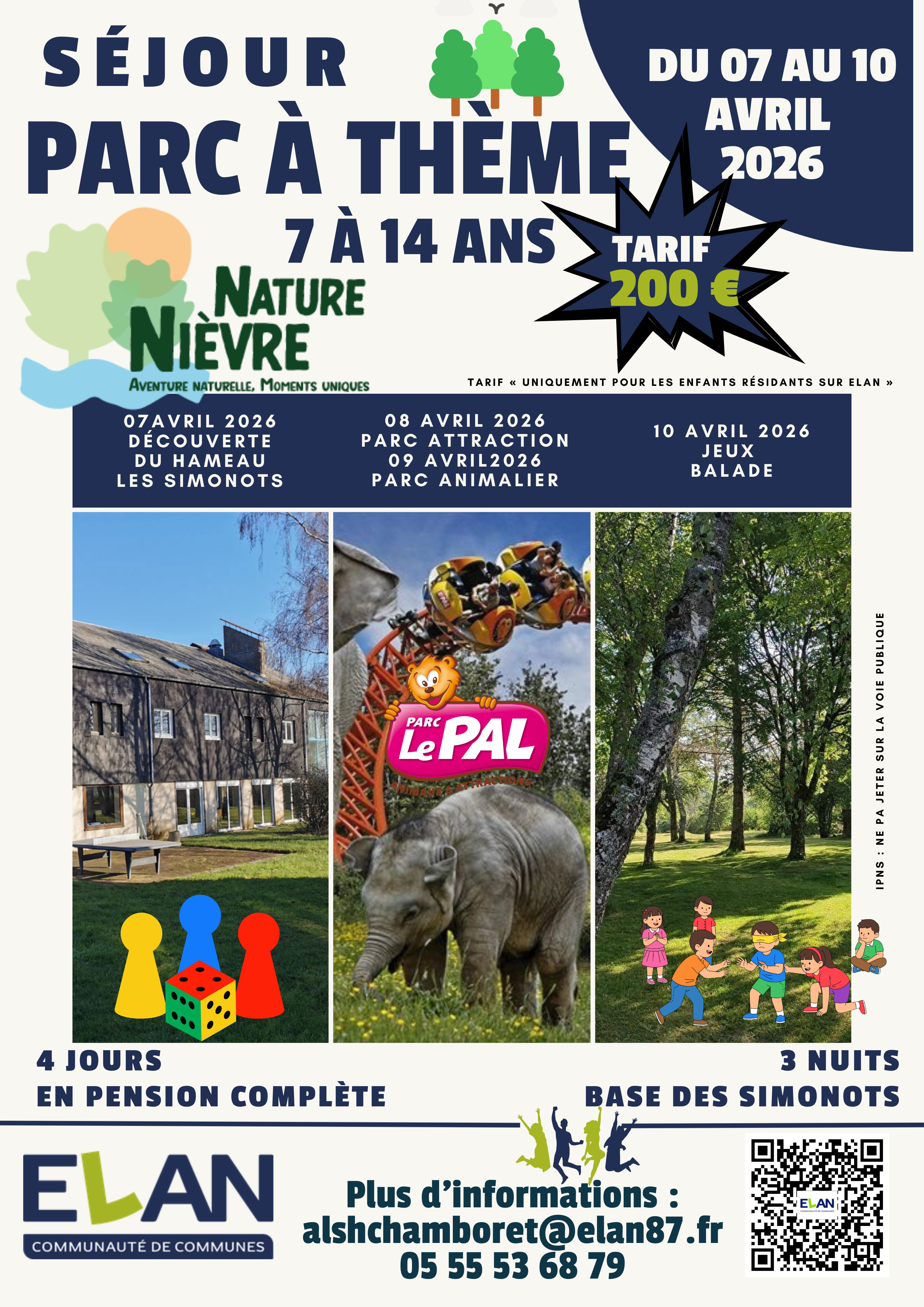 Tarif : 200 € (réservé aux enfants résidants sur ELAN)
